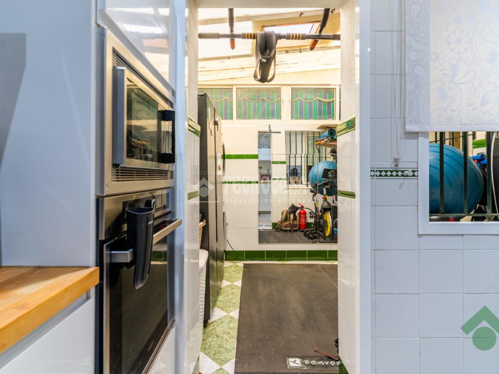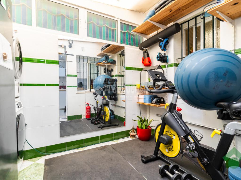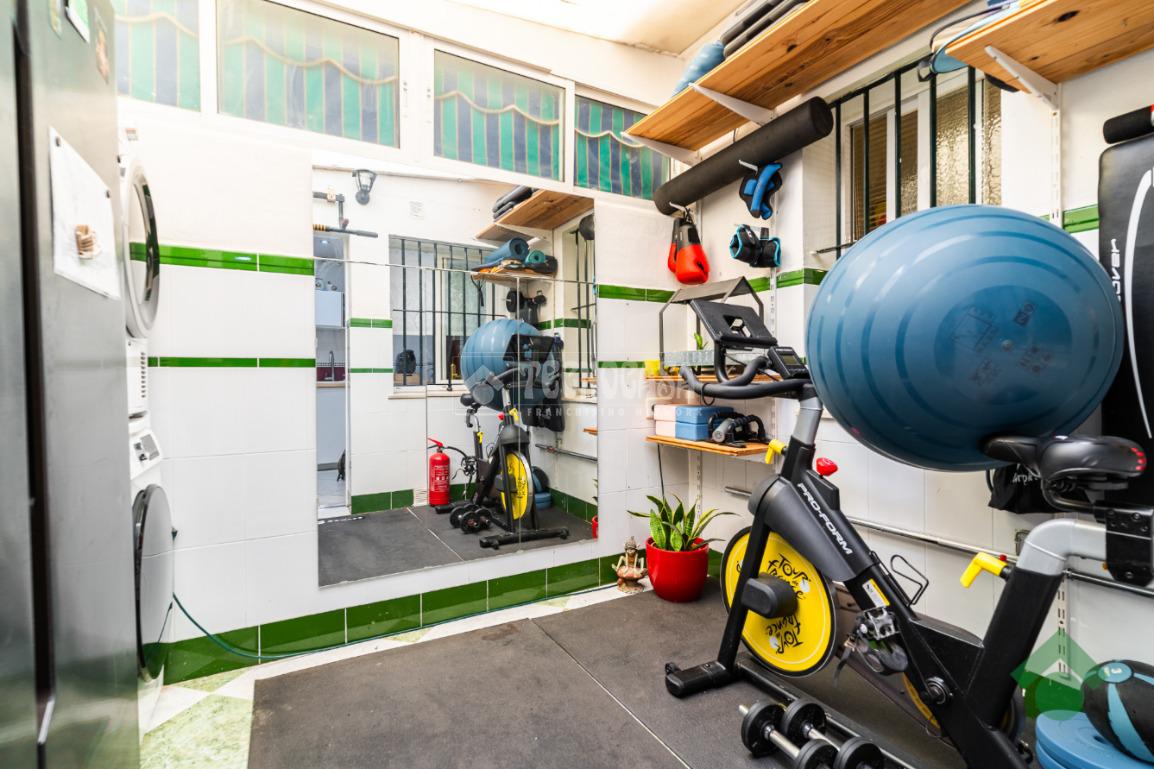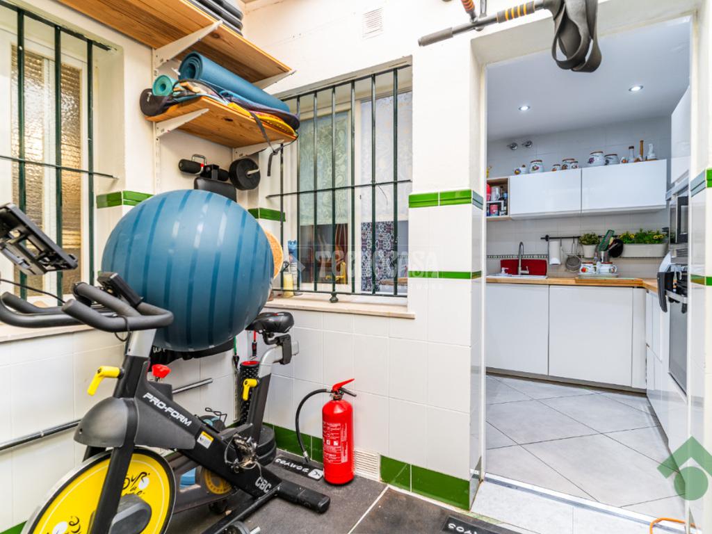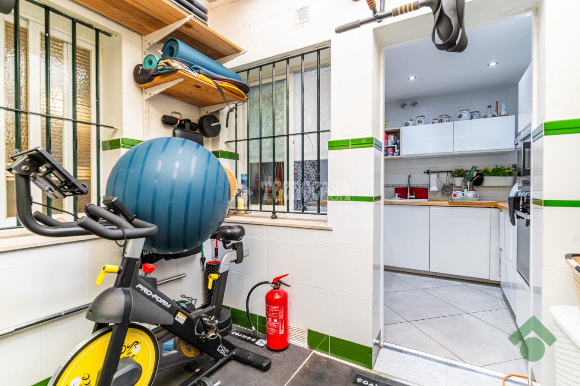En la planta baja, encontrarás un acogedor patio delantero, un salón amplio y luminoso, un aseo de cortesía, y una cocina totalmente reformada de hace pocos meses, con acceso a un patio interior, actualmente adaptado como gimnasio, perfecto también como zona de ocio o lavandería.